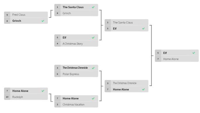 For this holiday article, The Pirate Post decided to take a deeper dive into what films are favored by some of the Southeast student body. Below is a bracket that shows some of the most popular holiday movies, voted on by students, as they face off to determine the ultimate Christmas classic.