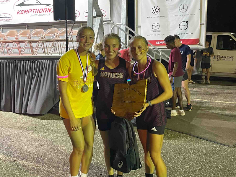The Southeast High School girls’ XC team hit the ground running this year! Julia Dillon is the head coach for the girls’ XC team, and the team leaders are Julia Wheeler and Jenna Canale, and they are the team’s top finishers. The fastest time this year is by Wheeler with a 19:08. The team’s other runners are Jullian Shaffner, Emma Smith, and alternating the 5th spot between Anastasia Sutliff and Eva Corll. The girls have been working hard and even started running in June before practices started to get in top shape for the year. Coach Dillon said, “The girls’ season has been very successful”. She hopes they continue their great season with more top finishes. Go girls’ cross country!