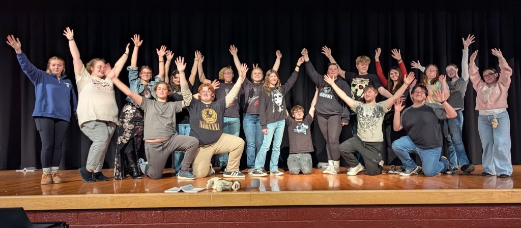 Our drama club is doing the play Freaky Friday on April 17th and 18th . Multiple hours spent on remembering lines, choreography, and multiple hours spent at the school shows the hard work and dedication as the club prepares for show time. The actors and actresses started rehearsal after school until 6:15. Our two lead actresses senior Aubree Varga and junior Laine Streem play mother and daughter.