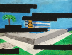 When turning the corner by the library have you ever noticed the flashy artwork on the walls? Those art pieces are created by our very own Southeast students, expressing themselves in unique ways that often go unnoticed. Art teacher Amber Schuch’s creative mind and style has created many interesting art projects that have led to the creations of breathtaking pieces. The art section in the halls draws you in with the new crochet and relevant world event projects that catches your attention. When just looking at a piece, more than just viewing comes to mind, every piece has a story and has emotions. When choosing an image to highlight, two of the pieces stood out from the rest; those pieces are by Odyssey Cadle and Matthew Ross.