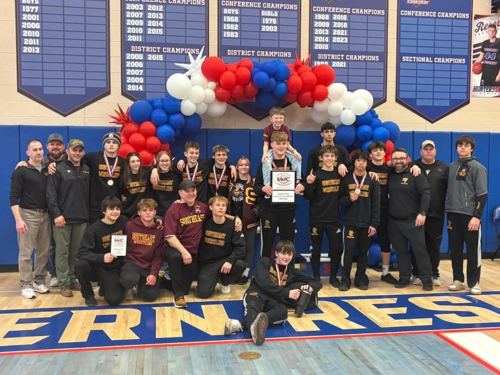 Southeast wrestling has won both a league and sectional championship, and these don’t seem to be the only major wins in sight. We had eight pirates move on past sectionals: Gavin Cantera, Nick Coffman, Riley Diehl, Landon Durstine, Damian Kemble, Dom Kemble, Natalie Kemble, and Trevor Osborne. The addition of Damian Kemble and Gavin Cantera played an important role in the pirate’s success. Kemble is the ninth ranked 120lb wrestler in division three, he is still a freshman so there is a lot more coming from this young man. Cantera is also a freshman and has been phenomenal for the team this season. He transferred from a powerhouse in division one wrestling and the change has been obvious. His matches have been quick making light work of his opponents. He is very adamant about winning more than just a sectional championship, he is confident in obtaining the state title for himself. Cantera may have wrestled for different schools before but he says “It’s different here, it’s like a family bond between everyone in that room” this really shows why our wrestling program has been so successful in recent years. Many people don’t realize the hard work and dedication that the entire team fights through. They have endured weight cuts, tough losses, long practices, and on top of all that they have been phenomenal students to have within our school. With talent, determination, and a family-like culture driving them forward, the pirates are proving that this league championship and sectional win may only be the beginning for the SHS wrestling program.