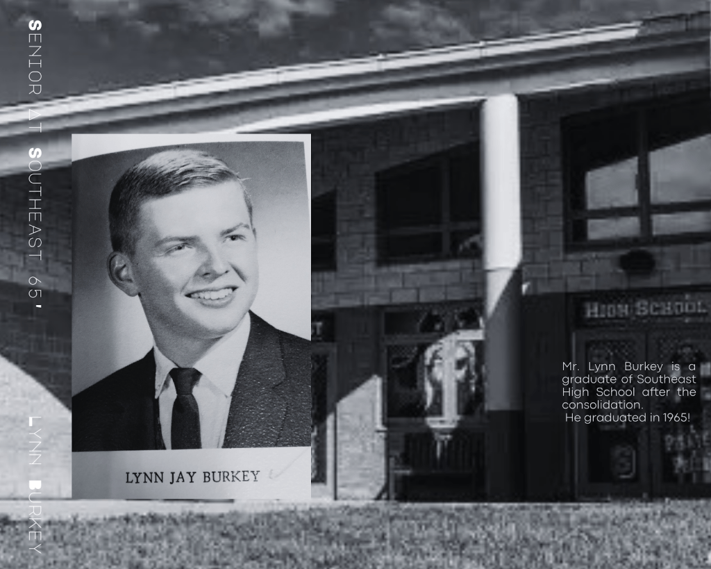 I interviewed an early graduate of Southeast, of whom graduated in 1965. His name is Lynn Burkey. He was part of the band, which at this time had gained recognition for its performances and competitions, drama productions had filled the auditorium, and athletic events brought the entire district together.